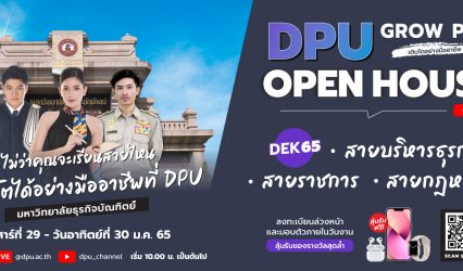 นักเรียน ม.ธุรกิจบัณฑิตย์ เปิดบ้าน DPU OPEN HOUSE ONLINE ครั้งที่ 2 ในธีม GROW PRO เติบโตอย่างมืออาชีพ สายบริหารธุรกิจ สายกฎหมาย สายข้าราชการ ห้ามพลาด!! EZ Webmaster December 21, 2021 มหาวิทยาลัยธุรกิจบัณฑิตย์ เปิดบ้านจัดงาน DPU OPEN HOUSE ONLINE ครั้งที่ 2 ในธีม GROW PRO เติบโตอย่างมืออาชีพ ชวนน้องๆ สายกฎหมาย สายบริหารธุรกิจ สายปกครอง มาค้นหาตัวตนแบบเน้นๆ เจาะลึกหลักสูตรเทรนด์อนาคต ไม่ว่าจะเลือกเรียนสายไหน ก็เติบโตได้อย่างมืออาชีพ กับ 5 วิทยาลัย และ 6 คณะ พร้อมฟังประสบการณ์ในการเลือกเรียนจากรุ่นพี่ในหลายคณะ ที่จะมาตอบในทุกคำถามทุกข้อสงสัยในการเลือกเรียน ไลฟ์สไตล์ การเตรียมตัวให้พร้อมกับเทรนด์อาชีพในอนาคต พบกับโปรโมชั่นสุดปัง!! น้องๆ Dek65 สมัครและมอบตัว!! ภายในวันที่ 29-31 มกราคม 2565 รับฟรี iPad และ Apple pencil หรือ Laptop พร้อมทุน 15,000 บาท)* พิเศษ!! จ่ายค่ามอบตัวเพียง 1,000 บาท เฉพาะ 3 วันนี้เท่านั้น พิเศษสุดๆ DPU จัดเต็มให้สำหรับผู้ที่ลงทะเบียนร่วมงานล่วงหน้า และมอบตัวภายในงาน ลุ้นรับของรางวัลสุดล้ำ iPhone, AirPods และ Apple Watch พบกันวันที่ 29-30 มกราคม 2565 ตั้งแต่ 10.00 น.เป็นต้นไป รับชมผ่านออนไลน์ได้ที่ Facebook Live :@dpu.ac.th หรือ Youtube : dpu_channel *เงื่อนไขเป็นไปตามที่มหาวิทยาลัยกำหนด…