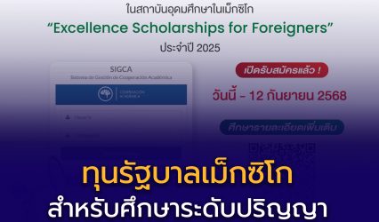 ทุนดีดีนักเรียน ทุนรัฐบาลเม็กซิโก สำหรับศึกษาระดับปริญญา หมดเขตสมัคร 12 กันยายน 2568 EZ Webmaster August 11, 2025 Mexico is calling TICA ชวนพี่ๆ น้องๆ ไปเปิดโลกแลกเปลี่ยนประสบการณ์การศึกษาที่ “เม็กซิโก“ กระทรวงการต่างประเทศเม็กซิโก โดย AMEXCID เสนอให้ทุนการศึกษา “Excellence Scholarships for Foreigners”…