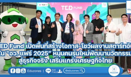 ครู-อาจารย์ TED Fund เปิดพื้นที่สร้างโอกาส-โชว์ผลงานสตาร์ทอัปไทยใน “อว. แฟร์ 2025” หนุนคนรุ่นใหม่พัฒนานวัตกรรมสู่ธุรกิจจริง เสริมแกร่งเศรษฐกิจไทย EZ Webmaster August 11, 2025 TED Fund เดินหน้ายกระดับระบบนิเวศธุรกิจสตาร์ทอัปไทย เปิดพื้นที่สร้างโอกาสให้ผู้ประกอบการเทคโนโลยีและนวัตกรรม ชูแนวคิด “เสริมแกร่ง สานฝัน ปั้นธุรกิจ” ในงาน “อว. แฟร์ 2025” พร้อมโชว์เคสผลงานจริงของผู้ได้รับทุนที่ประสบความสำเร็จ จุดประกายแนวคิด สร้างแรงบันดาลใจ ผลักดันพลังคนรุ่นใหม่ร่วมขับเคลื่อนเศรษฐกิจและสังคมของประเทศอย่างยั่งยืน…