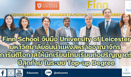 นักศึกษา Finn School จับมือ University of Leicester มหาวิทยาลัยชั้นนำแห่งสหราชอาณาจักร การันตีโอกาสให้นักเรียนไทยเรียนต่อปริญญาตรีปีสุดท้าย ในระบบ Top-up Degree EZ Webmaster August 11, 2025 นายกวิน พันธ์ประสิทธิเวช กรรมการผู้จัดการสถาบัน Finn (ฟินน์) พร้อมด้วย ดร. ปริญญ์ ศุกรีเขตร ผู้อำนวยการฝ่ายวิชาการ ร่วมลงนามความร่วมมือกับ ศาสตราจารย์นิชาน คานาการาชาห์ อธิการบดีมหาวิทยาลัยเลสเตอร์ มหาวิทยาลัยเก่าแก่ชื่อดังและเป็นจุดหมายยอดนิยมของนักศึกษาไทยที่ต้องการศึกษาในมหาวิทยาลัยระดับโลก โดยที่ Finn คือทางลัดสู่การจบปริญญาตรีจากมหาวิทยาลัยชั้นนำในอังกฤษและสวิตเซอร์แลนด์ภายในเวลาเพียง 3 ปี โดยใช้ระบบการเรียนแบบ 2+1 นักเรียนจะเรียน 2 ปีแรกในไทยกับหลักสูตรระดับสากล UK Level 4 &…