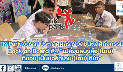 นักเรียน TK Park จัดงานประกาศผลรางวัลชนะเลิศกิจกรรม Book on Board #4 “เปลี่ยนหนังสือ (ไทย) ที่ชอบ เป็นบอร์ดเกม (ไทย) ที่ใช่” EZ Webmaster August 11, 2025 สถาบันอุทยานการเรียนรู้ TK Park ร่วมกับสถาบันบอร์ดเกมเพื่อการเรียนรู้ จัดงานประกาศผลรางวัลชนะเลิศกิจกรรมประกวดบอร์ดเกม “Book on Board ปีที่ 4 เปลี่ยนหนังสือ (ไทย) ที่ชอบ เป็นบอร์ดเกม (ไทย) ที่ใช่”…