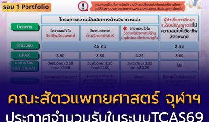 Blogนักเรียน คณะสัตวแพทยศาสตร์ จุฬาฯ ประกาศ จำนวนรับ ในระบบTCAS69 EZ Webmaster August 11, 2025 คณะสัตวแพทยศาสตร์ จุฬาฯ ประกาศ จำนวนรับ ในระบบTCAS69 เปิดรับ 3 รอบ รับรวม 174 คน – รอบที่ 1 #Portfolio 2…