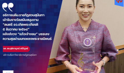 Blogนักศึกษา อธิการบดีม.ราชภัฏสวนสุนันทา เข้ารับรางวัลงาน “ดนตรี อว.เทิดพระเกียรติ ๕ ธันวาคม ๒๕๖๔” หลังส่งวง “แก้วเจ้าจอม” บรรเลงความสุขผ่านบทเพลงพระราชนิพนธ์ tui sakrapee December 15, 2021 อธิการบดีเข้ารับรางวัลสนับสนุนงาน รองศาสตราจารย์ ดร.ชุติกาญจน์ ศรีวิบูลย์ อธิการบดีมหาวิทยาลัยราชภัฏสวนสุนันทา เข้ารับรางวัลในการสนับสนุนจัดงาน “ดนตรี อว.เทิดพระเกียรติ ๕ ธันวาคม ๒๕๖๔” เพื่อแสดงออกซึ่งความจงรักภักดี และน้อมรำลึกในพระมหากรุณาธิคุณ เนื่องในวันคล้ายวันพระบรมราชสมภพพระบาทสมเด็จพระบรมชนกาธิเบศร มหาภูมิพลอดุลยเดชมหาราช บรมนาถบพิตร…