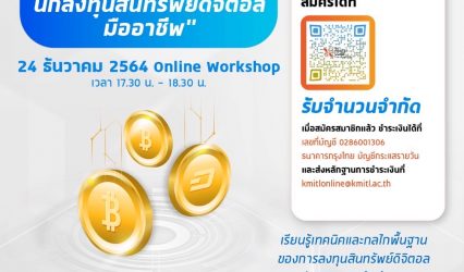 นักศึกษา สจล. ชวนเป็น ‘นักลงทุนสินทรัพย์ดิจิทัลมืออาชีพ’ แบบเร่งรัดใน 1 ชั่วโมง EZ Webmaster December 15, 2021 สถาบันเทคโนโลยีพระจอมเกล้าเจ้าคุณทหารลาดกระบัง (สจล.) เชิญชวนผู้สนใจร่วมเวิร์คชอปหลักสูตรเร่งรัด 1 ชั่วโมงสู่การเป็น ‘นักลงทุนสินทรัพย์ดิจิทัลมืออาชีพ’ ในหลักสูตรเตรียมพร้อมสู่การเป็นนักลงทุนสินทรัพย์ดิจิทัลมืออาชีพ ในรูปแบบออนไลน์ ภายใต้โครงการ “KMITL Master Class” การพัฒนาทักษะสำคัญในยุคดิสรัปชัน ผ่านการเรียนออนไลน์ร่วมกับผู้เชี่ยวชาญในสาขาต่างๆ โดยครั้งนี้ จะเป็นการพาผู้เรียนรู้ลึกถึงเทคนิคและกลไกพื้นฐานของการลงทุนสินทรัพย์ดิจิทัล เหรียญประเภทใดที่น่าลงทุน พร้อมทั้งเทคนิคการลงทุนในปี 2022 กับ ดร.ฉัตรพงศ์ วัฒนจิรัฎฐ์ ประธานฝ่ายปฏิบัติการ บริษัท…