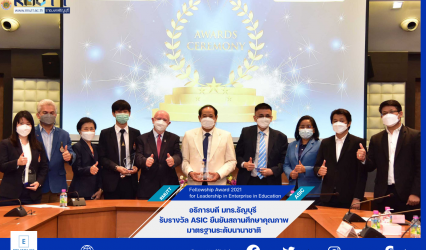 Blogครู-อาจารย์ อธิการบดี มทร.ธัญบุรี รับรางวัล ASIC ยืนยันสถานศึกษาคุณภาพมาตรฐานระดับนานาชาติ tui sakrapee December 4, 2021 มหาวิทยาเทคโนโลยีราชมงคลธัญบุรี (มทร.ธัญบุรี) – รศ.ดร. สมหมาย ผิวสอาด อธิการบดีมหาวิทยาลัยเทคโนโลยีราชมงคลธัญบุรี (มทร.ธัญบุรี) รับมอบรางวัล Fellowship Award 2021 for Leadership in Enterprise…