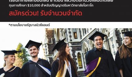นักเรียน มีทุน! ปริญญาตรี Hybrid หลักสูตรความร่วมมือระหว่างมหาวิทยาลัย Otago และ RMUTT จบมาทำงานต่อที่นิวซีแลนด์ได้สูงสุด 3 ปี tui sakrapee December 6, 2021 เปิดรับสมัครแล้ว ปริญญาตรี Hybrid หลักสูตรความร่วมมือระหว่างมหาวิทยาลัย Otago และ RMUTT (มหาวิทยาลัยเทคโนโลยีราชมงคลธัญบุรี) เรียนหลักสูตรเตรียมความพร้อมด้านธุรกิจที่ไทย 1 เทอม และต่อเทอม 2 ที่นิวซีแลนด์ จากนั้นเลือกเรียนต่อในสาขาธุรกิจ การท่องเที่ยว…