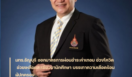 Blogนักศึกษา มทร.ธัญบุรี ออกมาตรการผ่อนชำระค่าเทอม ช่วงโควิด ช่วยเหลือและเยียวยานักศึกษา บรรเทาความเดือดร้อนผู้ปกครอง tui sakrapee November 26, 2021 รศ.ดร.สมหมาย ผิวสอาด อธิการบดีมหาวิทยาลัยเทคโนโลยีราชมงคลธัญบุรี (มทร.ธัญบุรี) เผยว่า เนื่องจากสถานการณ์การแพร่ระบาดของโรคติดเชื้อไวรัสโคโรนา 2019 (โควิด-19) ในปัจจุบันได้ส่งผลกระทบทางเศรษฐกิจสำหรับผู้ปกครองและนักศึกษาเป็นจำนวนมาก ดังนั้นเพื่อเป็นการช่วยเหลือและเยียวยานักศึกษา รวมทั้งช่วยบรรเทาความเดือดร้อนของผู้ปกครอง มหาวิทยาลัยจึงมีมาตรการช่วยเหลือและเยียวยานักศึกษา ในการชำระค่าบำรุงการศึกษา ค่าลงทะเบียน ในภาคการศึกษาที่ 2…