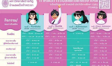 นักเรียน TCAS65 กำหนดการรับสมัครทุกรอบของ มหาวิทยาลัยราชภัฏบ้านสมเด็จเจ้าพระยา EZ Webmaster November 16, 2021 สำนักส่งเสริมวิชาการและงานทะเบียน มรภ. บ้านสมเด็จเจ้าพระยา ประกาศเปิดรับสมัครนักศึกษาใหม่ ระดับปริญญาตรี ประจำปีการศึกษา 2565 หรือ TCAS65 ผ่านการสมัคร 4 รอบ ดังนี้ รอบที่ 1 Portfolio…