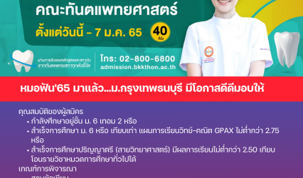 Blogนักเรียน หมอฟัน’65มาแล้ว ม.กรุงเทพธนบุรี รับจำกัด 40 ที่นั่ง เรียนหลักสูตรทันตแพทยศาสตรบัณฑิต tui sakrapee November 17, 2021 คณะทันตแพทยศาสตร์ มหาวิทยาลัยกรุงเทพธนบุรี เปิดรับสมัครบุคคลเข้าศึกษาในหลักสูตรทันตแพทยศาสตรบัณฑิต ปีการศึกษา 2565 จำนวน 40 ที่นั่ง เริ่มแล้ววันนี้ การรับสมัคร ตั้งแต่วันนี้ – 7 ม.ค. 65 จำนวนการรับสมัคร…