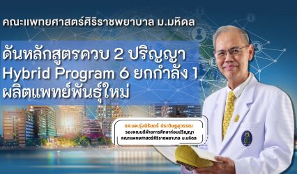 นักเรียน คณะแพทยศาสตร์ศิริราชพยาบาล ดันหลักสูตรควบ 2 ปริญญา Hybrid Program 6 ยกกำลัง 1 ผลิตแพทย์พันธุ์ใหม่ ตอบโจทย์โลกแห่งอนาคตที่ไร้ขีดจำกัด EZ Webmaster November 17, 2021 คณะแพทยศาสตร์ศิริราชพยาบาล ม.มหิดล ผนึกความร่วมมือกับ 4 คณะในรั้วมหาวิทยาลัยเดียวกัน และ 2 สถาบันการศึกษาชั้นนำต่างประเทศ พลิกโฉมการเรียนแพทย์ เปิดหลักสูตรใหม่ Hybrid Program 6 ยกกำลัง 1 เรียนควบ 6 ปี จบแล้วรับ 2 ปริญญา…