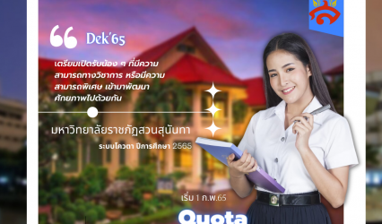 Blogนักเรียน 667ที่นั่ง! มหาวิทยาลัยราชภัฏสวนสุนันทา เปิดรับระบบโควตา ประเภทความสามารถทางวิชาการ – ความสามารถพิเศษ เริ่ม 1 ก.พ.65 tui sakrapee November 8, 2021 มหาวิทยาลัยราชภัฏสวนสุนันทา จะดำเนินการรับสมัครคัดเลือกนักเรียนระดับมัธยมศึกษาตอนปลายสายสามัญเข้าศึกษาในโครงการคัดเลือกบุคคลเข้าศึกษาระดับปริญญาตรี มหาวิทยาลัยราชภัฏสวนสุนันทา ระบบโควตา ประเภทความสามารถทางวิชาการ และประเภทความสามารถพิเศษ ระดับปริญญาตรี ประจำปีการศึกษา2565 (รอบที่ 2 Quota) ตามรายละเอียดการคัดเลือก ดังนี้ 1. หลักสูตร คณะ…