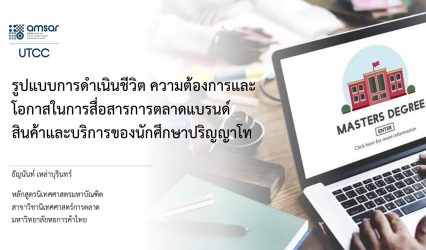 นักศึกษา ศูนย์ AMSAR นิเทศ หอการค้า เผยผลวิจัย“ส่องไลฟ์สไตล์เด็กปอโท สื่อสารอย่างไรให้เติมเต็มจุดเจ็บปวด” EZ Webmaster November 9, 2021 ศูนย์ศึกษาสื่อและการสื่อสารอาเซียน (AMSAR) เปิดเผยผลวิจัย “รูปแบบการดำเนินชีวิต ความต้องการและโอกาสในการสื่อสารการตลาดแบรนด์สินค้าและบริการของนักศึกษาปริญญาโท” ของนางสาวธัญนันท์ เหล่าบุรินทร์ โดยมี ผศ.ดร.สุทธนิภา ศรีไสย์ ผู้อำนวยการศูนย์ AMSAR เป็นอาจารย์ที่ปรึกษา โดยงานวิจัยนี้ ผู้วิจัยพัฒนาแบบสอบถามด้วยการสนทนากลุ่ม (Focus…