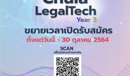 Blogนักศึกษา Chula LegalTech ปี 3 ขยายเวลารับสมัครถึง 30 ตุลาคม ชวนนักศึกษาจากทุกสถาบัน แข่งขันสร้างนวัตกรรมกฎหมายครั้งแรกของประเทศ tui sakrapee October 23, 2021 Chula LegalTech ปี 3 ขยายเวลารับสมัครถึง 30 ตุลาคม ชวนนักศึกษาจากทุกสถาบัน แข่งขันสร้างนวัตกรรมกฎหมายครั้งแรกของประเทศ คณะนิติศาสตร์ จุฬาลงกรณ์มหาวิทยาลัย ร่วมกับ Tilleke & Gibbins…