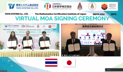 นักศึกษา มข.MOU 4 ฝ่าย ไทย-ญี่ปุ่น ใช้ STEAM Education สร้างจิตสำนึกทางสิ่งแวดล้อมสู่การพัฒนาอย่างยั่งยืน ตอบโจทย์ SDG สหประชาชาติ EZ Webmaster October 25, 2021 สถาบันวิจัยและพัฒนาวิชาชีพครูสำหรับอาเซียน มหาวิทยาลัยขอนแก่น โดย รองศาสตราจารย์ ดร.ไมตรี อินทร์ประสิทธิ์ (กลาง) รองอธิการบดีฝ่ายการศึกษาและบริการวิชาการ รักษาการแทนผู้อำนวยการสถาบันวิจัยและพัฒนาวิชาชีพครูสำหรับอาเซียน ประธานมูลนิธิการศึกษาเพื่อการพัฒนาทักษะการคิด มหาวิทยาลัยขอนแก่น ได้จัดพิธีลงนามในบันทึกข้อตกลงความร่วมมือโครงการ “สร้างจิตสำนึกทางสิ่งแวดล้อม โดยใช้ STEAM Education ในการแก้ปัญหา” 4 หน่วยงาน ระหว่าง TOYO SYSTEM Co., LTD. สถาบันวิจัยและพัฒนาวิชาชีพครูสำหรับอาเซียน มหาวิทยาลัยขอนแก่น The Mathematics Certification…