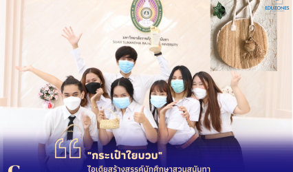 Blogนักศึกษา กระเป๋าใยบวบ” ไอเดียสร้างสรรค์นักศึกษาสวนสุนันทา คว้ารางวัลโครงการ Green Youth tui sakrapee October 24, 2021 นศ.สวนสุนันทา ผุดไอเดียผลิตภัณฑ์เป็นมิตรกับสิ่งแวดล้อม “กระเป๋าใยบวบ” คว้ารางวัลภายใต้โครงการ Green Youth ประจำปี 2563 จากกระทรวงทรัพยากรธรรมชาติและสิ่งแวดล้อม ในสถานการณ์ปัจจุบันโรคไวรัสโคโรนา 2019 ระบาด มีการใช้บรรจุภัณฑ์แบบใช้ครั้งเดียวแล้วทิ้งยังเป็นที่พบเห็นได้ทั่วไปในสังคมไทย เช่น บรรจุภัณฑ์ประเภทพลาสติก โฟม…