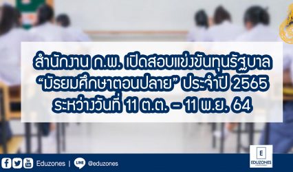 ทุนดีดี สำนักงาน ก.พ. เปิดสอบแข่งขันทุนรัฐบาล “มัธยมศึกษาตอนปลาย” ประจำปี 2565 ระหว่างวันที่ 11 ต.ต. – 11 พ.ย. 64 EZ Webmaster October 22, 2021 สำนักงาน ก.พ. ประกาศรับสมัครบุคคลสอบแข่งขันเพื่อรับทุนเล่าเรียนหลวงและทุนรัฐบาลฯ (ทุนระดับมัธยมศึกษาตอนปลาย) ประจำปี 2565 เปิดรับสมัครในระหว่างวันที่ 11 ตุลาคม – 11 พฤศจิกายน 2564 ประเภททุน (จำนวน) -ทุนเรียนหลวง…