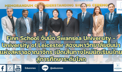 กิจกรรม Finn School จับมือ Swansea University – University of Leicester สองมหาวิทยาลัยชั้นนำแห่งสหราชอาณาจักร เปิดเส้นทางใหม่นักเรียนไทยสู่การศึกษาระดับโลก EZ Webmaster August 7, 2025 สถาบัน Finn (ฟินน์) ลงนามความร่วมมือกับ Swansea University และ University of Leicester สองมหาวิทยาลัยชั้นนำของสหราชอาณาจักร การันตีโอกาสให้นักเรียนไทยเรียนต่อปริญญาตรีปีสุดท้าย ในระบบ Top-up Degree ด้วยมาตรฐานการเรียนการสอนระดับสากล ลดข้อจำกัดด้านระบบการศึกษาและต้นทุน พร้อมสนับสนุนนักเรียนไทยให้สำเร็จการศึกษาจากมหาวิทยาลัยระดับโลกได้อย่างมั่นใจ นายกวิน พันธ์ประสิทธิเวช กรรมการผู้จัดการและผู้ก่อตั้งสถาบัน Finn เปิดเผยว่าสถาบัน Finn หรือ Finn School of…