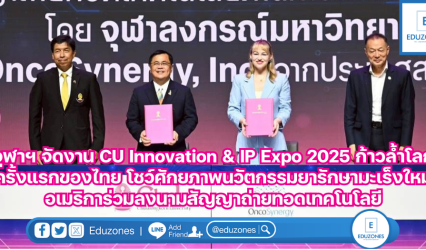 กิจกรรม จุฬาฯ จัดงาน CU Innovation & IP Expo 2025 ก้าวล้ำโลกครั้งแรกของไทย จุฬาฯ โชว์ศักยภาพนวัตกรรมยารักษามะเร็งใหม่ อเมริการ่วมลงนามสัญญาถ่ายทอดเทคโนโลยี EZ Webmaster August 6, 2025 ศูนย์กลางนวัตกรรมแห่งจุฬาลงกรณ์มหาวิทยาลัย (CU Innovation Hub) จัดงาน CU Innovation & IP Expo 2025 เมื่อวันที่ 4 สิงหาคมที่ผ่านมา ณ พารากอน…