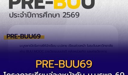 นักเรียน PRE-BUU69 โครงการเรียนล่วงหน้ากับ ม.บูรพา ประจำปีการศึกษา 2569 EZ Webmaster August 6, 2025 เตรียมพร้อมก่อนเข้ามหาวิทยาลัย! โครงการเรียนล่วงหน้ากับ ม.บูรพา ประจำปีการศึกษา 2569 เปิดโอกาสให้น้อง ๆ ม.ปลาย ได้เรียนรายวิชา ป.ตรี และมีสิทธิพิเศษในการเข้าศึกษาต่อ ภายใต้การดูแลจากคณาจารย์ผู้เชี่ยวชาญของมหาวิทยาลัยบูรพา มีหลักสูตรให้เลือกเรียนมากถึง 42 หลักสูตร ครอบคลุมหลากหลายศาสตร์…