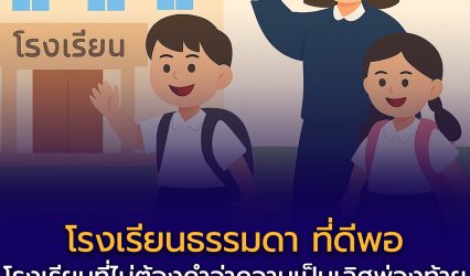 ข่าวเด่นครู-อาจารย์ โรงเรียนธรรมดา ที่ดีพอ โดย วิริยะ ฤาชัยพาณิชย์ นักวิชาการอิสระ EZ Webmaster August 6, 2025 โรงเรียนธรรมดา ที่ดีพอ /วิริยะ ฤาชัยพาณิชย์ นักวิชาการอิสระ ผมอยากเห็น “โรงเรียนธรรมดา” โรงเรียนที่ไม่ต้องมีคำว่า “ความเป็นเลิศ” พ่วงท้าย ไม่ต้องมีโล่รางวัล ไม่ต้องมีชื่อเสียง แต่เป็นโรงเรียนที่ ดีพอ สำหรับทุกคน เราไม่มีทางแก้ปัญหาคุณภาพการศึกษาได้…