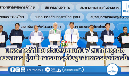 กิจกรรม ม.หอการค้าไทย ร่วมลงนามกับ 7 สมาคมธุรกิจด้านอาหาร มุ่งเน้นการยกระดับอุตสาหกรรมอาหารไทย EZ Webmaster August 4, 2025 หลักสูตรบริหารธุรกิจมหาบัณฑิต กลุ่มวิชาการจัดการธุรกิจร้านอาหาร (RMBA) มหาวิทยาลัยหอการค้าไทย จัดพิธีลงนามความร่วมมือทางวิชาการ โดยมี รศ.ดร.ธนวรรธน์ พลวิชัย อธิการบดีมหาวิทยาลัยหอการค้าไทย (ที่ 5 จากซ้าย) ร่วมกับ 8 นายกสมาคมธุรกิจด้านอาหาร ลงนามร่วมกันในครั้งนี้…
