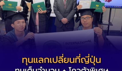 ทุนดีดีนักเรียน Thai-Japan Cultural Exchange Program 2025 (ทุนเต็มจำนวน) EZ Webmaster August 4, 2025 รายละเอียดโครงการ โครงการนี้คือโอกาสครั้งสำคัญสำหรับเยาวชนไทยที่จะได้ใช้ชีวิตในเมืองโอซาก้า ประเทศญี่ปุ่น เพื่อเรียนรู้วัฒนธรรมญี่ปุ่นแบบลึกซึ้ง ฝึกฝนทักษะภาษา และเข้าใจแนวคิดการเป็นผู้นำที่ถ่อมตนแต่เปี่ยมด้วยพลังในแบบฉบับญี่ปุ่น ผ่านกิจกรรมอย่างการชงชา การทำซูชิ การสร้างมังงะ และการท่องเที่ยวในพื้นที่ประวัติศาสตร์จริง ไม่เพียงแค่เรียนรู้ โครงการนี้ยังเปิดเวทีให้เยาวชนไทยได้แสดงศักยภาพผ่านกิจกรรม “Thai Soft Power Showcase”…