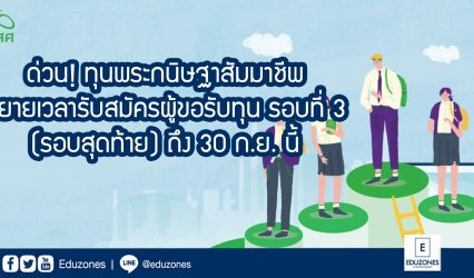 ทุนดีดี ด่วน! ทุนพระกนิษฐาสัมมาชีพ ขยายเวลารับสมัครผู้ขอรับทุน รอบที่ 3 (รอบสุดท้าย) ถึง 30 ก.ย. นี้ EZ Webmaster September 11, 2021 กสศ. ขอเชิญชวนผู้รับทุนที่สนใจสมัครรับทุนด้วยตนเอง และสถานศึกษาที่ผู้รับทุนสำเร็จการศึกษาเสนอชื่อผู้ขอรับทุนเพื่อเข้ารับทุนพระกนิษฐาสัมมาชีพ ปีการศึกษา 2564 รอบที่ 3 (รอบสุดท้าย) โดยจะขยายเวลาเปิดรับสมัคร ถึงวันที่ 30 กันยายน 2564 คุณสมบัติของผู้ขอรับทุน -เป็นผู้ขาดแคลนทุนทรัพย์โดยมีรายได้เฉลี่ยต่อคนต่อเดือน…