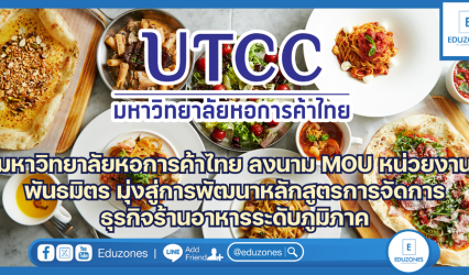 กิจกรรม มหาวิทยาลัยหอการค้าไทย ลงนาม MOU หน่วยงานพันธมิตร มุ่งสู่การพัฒนาหลักสูตรการจัดการธุรกิจร้านอาหารระดับภูมิภาค EZ Webmaster July 30, 2025 เมื่อช่วงเดือนกรกฏาคม 2568 ณ หอประชุมใหญ่ มหาวิทยาลัยหอการค้าไทย จัดพิธีลงนามบันทึกข้อตกลงความร่วมมือ (MOU) ระหว่างบัณฑิตวิทยาลัย มหาวิทยาลัยหอการค้าไทย กับ หน่วยงานพันธมิตร 7 หน่วยงาน เพื่อพัฒนาหลักสูตรปริญญาโทบริหารธุรกิจสำหรับผู้จัดการ หรือ RMBA…