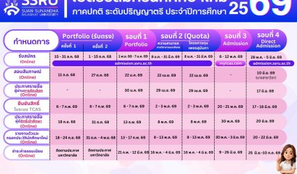 Blogนักเรียน สวนสุนันทา เปิดรับนักศึกษาใหม่ปี 2569 ครบทุกรอบ Portfolio – Quota – Admission และ Direct Admission เริ่ม 15 ส.ค.นี้ tui sakrapee August 1, 2025 SSRU เปิดรับสมัครนักศึกษาใหม่ ปี 2569! เตรียมพร้อมมาเป็นว่าที่ “ลูกพระนาง” ได้แล้ววันนี้! สมัครง่าย ออนไลน์ทุกขั้นตอน เปิดรับ 6 รอบ ทั้ง Portfolio, Quota, Admission…