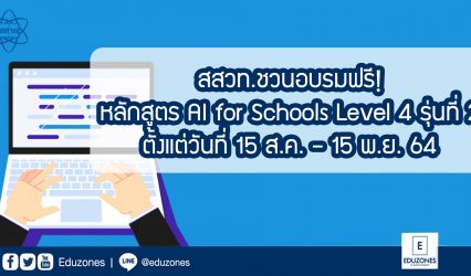 Blog สสวท.ชวนอบรมฟรี! หลักสูตร AI for Schools Level 4 รุ่นที่ 2 ตั้งแต่วันที่ 15 ส.ค. – 15 พ.ย. 64 EZ Webmaster August 15, 2021 สถาบันส่งเสริมการสอนวิทยาศาสตร์และเทคโนโลยี (สสวท.) จัดอบรม หลักสูตรอบรมออนไลน์ปัญญาประดิษฐ์สำหรับโรงเรียน หลักสูตร 4 (AI for Schools Level 4) รุ่นที่ 2 ฟรี ไม่มีค่าใช้จ่าย โดยจะเปิดอบรมตั้งแต่วันที่…