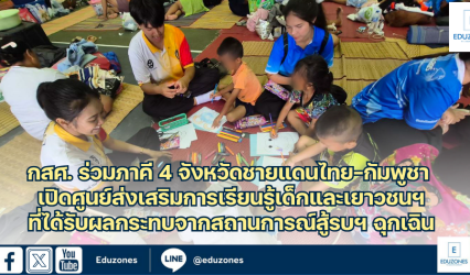 นักเรียน กสศ. ร่วมภาคี 4 จังหวัดชายแดนไทย-กัมพูชา เปิดศูนย์ส่งเสริมการเรียนรู้เด็กและเยาวชนฯที่ได้รับผลกระทบจากสถานการณ์สู้รบฯ ฉุกเฉิน สร้างพื้นที่ปลอดภัย – ป้องกันปัญหาภาวะเครียดจากเหตุการณ์รุนแรง (PTSD) และภาวะการเรียนรู้ถดถอย (Learning Loss) นักวิชาการกังวลทิ้งบาดแผลทางใจระยะยาว แนะระดมพื้นที่และกิจกรรมเพื่อดูแลฟื้นฟูจิตใจ EZ Webmaster July 29, 2025 ดร.ไกรยส ภัทราวาท ผู้จัดการกองทุนเพื่อความเสมอภาคทางการศึกษา (กสศ.) เปิดเผยว่า จากสถานการณ์ความไม่สงบบริเวณชายแดนไทย-กัมพูชา ซึ่งส่งผลให้มีผู้เสียชีวิต รวมถึงการปิดโรงเรียนในพื้นที่เสี่ยง และการอพยพเด็ก ผู้สูงอายุ และประชาชนไปยังศูนย์พักพิงชั่วคราวนั้น กสศ.มีความห่วงใยอย่างยิ่ง โดยเฉพาะผลกระทบต่อเด็กและเยาวชนด้านภาวะการเรียนรู้และพัฒนาการถดถอย (Learning Loss) เพื่อบรรเทาผลกระทบดังกล่าว…