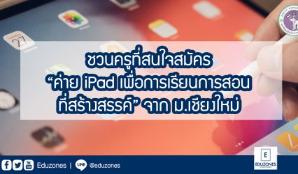 ครู-อาจารย์ ชวนครูที่สนใจสมัคร “ค่าย iPad เพื่อการเรียนการสอนที่สร้างสรรค์” จาก ม.เชียงใหม่ EZ Webmaster July 30, 2021 มหาวิทยาลัยเชียงใหม่จัดกิจกรรม “ค่าย iPad เพื่อการเรียนการสอนที่สร้างสรรค์ (iPad for Creative Teaching and Learning Camp)” เพื่อให้ผู้เข้าอบรมได้รับการพัฒนาสมรรถนะด้านการใช้เทคโนโลยีเพื่อให้สามารถสร้างสรรค์สื่อ บทเรียน และชิ้นงานที่ส่งเสริมการเชื่อมต่อการเรียนรู้ (Connected) การทํางานร่วมกัน…
