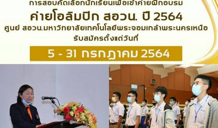 นักเรียน ยืนหนึ่ง โอลิมปิกวิชาการ ศูนย์ สอวน. มจพ. เปิดรับสมัครโค้งสุดท้ายถึง 31 ก.ค. นี้ EZ Webmaster July 26, 2021 ผศ.ดร.อนุสรา ศรีสรวล รองคณบดีฝ่ายสหกิจศึกษาและบริการวิชาการ คณะวิทยาศาสตร์ประยุกต์ มหาวิทยาลัยเทคโนโลยีพระจอมเกล้าพระนครเหนือ (มจพ.) เปิดเผยว่า ในปี 2564 ศูนย์ สอวน. มหาวิทยาลัยเทคโนโลยีพระจอมเกล้าพระนครเหนือ เปิดรับสมัครนักเรียนเพื่อสอบคัดเลือกเข้าค่าย 1 ปีการศึกษา 2564…