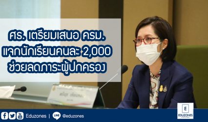 ข่าวเด่น ศธ. เตรียมเสนอ ครม. แจกนักเรียนคนละ 2,000 ช่วยลดภาระผู้ปกครอง EZ Webmaster July 24, 2021 ล่าสุด รัฐมนตรีว่าการกระทรวงศึกษาธิการ นางสาวตรีนุช เทียนทอง เปิดเผยว่า ในการประชุมหารือการออกมาตรการลดภาระค่าใช้จ่ายด้านการศึกษา เพื่อบรรเทาผลกระทบของผู้ปกครอง นักเรียน และนักศึกษา เนื่องจากสถานการณ์การแพร่ระบาดของโควิด-19 ซึ่งมี พล.อ.ประยุทธ์ จันทร์โอชา นายกรัฐมนตรี เป็นประธาน เมื่อวันที่…