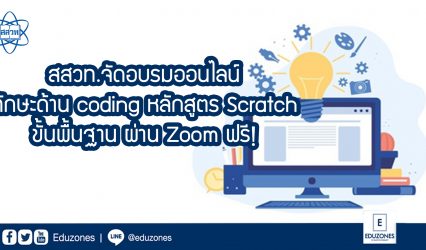 ครู-อาจารย์ สสวท.จัดอบรมออนไลน์ทักษะด้าน coding หลักสูตร Scratch ขั้นพื้นฐาน ผ่าน Zoom ฟรี! EZ Webmaster July 19, 2021 สถาบันส่งเสริมการสอนวิทยาศาสตร์และเทคโนโลยี (สสวท.) ขอเชิญคุณครูที่สนใจพัฒนาทักษะด้าน coding สมัครเข้าอบรมออนไลน์หลักสูตร Scratch ขั้นพื้นฐาน สำหรับการจัดการเรียนรู้วิทยาการคำนวณ ผ่านโปรแกรม Zoom โดยสามารถเข้าอบรมได้ฟรี ไม่มีค่าใช้จ่าย สำหรับคุณสมบัติของผู้เข้าอบรม มีดังนี้ -เป็นครูผู้สอนที่ไม่มีพื้นฐานการเขียนโปรแกรม…