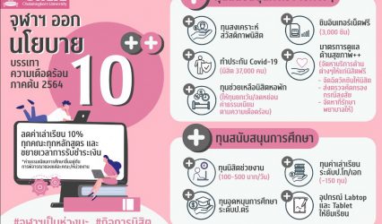 Blogนักศึกษา จุฬาฯ ชูนโยบาย “10 พลัส พลัส” ลดค่าเล่าเรียน ให้ทุนและสนับสนุนค่าใช้จ่าย ช่วยนิสิตที่เดือดร้อนจากโควิด-19 ระลอกใหม่ tui sakrapee July 8, 2021 จุฬาฯ มุ่งบรรเทาความเดือดร้อนของนิสิตจากโควิด-19 ด้วยนโยบาย “10 พลัส พลัส” ในปีการศึกษา 2564 โดยปรับลดค่าเล่าเรียนและค่าธรรมเนียมการศึกษาร้อยละ 10 ให้นิสิตทุกคณะ…