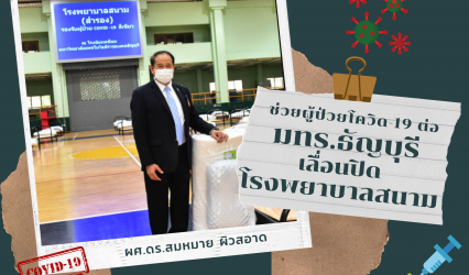 Blogนักศึกษา ทุ่มช่วยผู้ป่วยโควิด-19 ต่อ “มทร.ธัญบุรี” เลื่อนปิดโรงพยาบาลสนาม tui sakrapee July 5, 2021 ผู้ช่วยศาสตราจารย์ ดร.สมหมาย ผิวสอาด อธิการบดีมหาวิทยาลัยเทคโนโลยีราชมงคล (มทร.) ธัญบุรี เปิดเผยว่า ตามที่มทร.ธัญบุรี ได้เปิดพื้นที่ภายในโรงยิมเนเซียมของมหาวิทยาลัยเป็นโรงพยาบาลสนาม (สำรอง) รองรับผู้ป่วยจากเชื้อไวรัสโคโรนา 2019 หรือโควิด-19 ในกลุ่มสีเขียว มาตั้งแต่ปลายเดือน เม.ย.ที่ผ่านมา…