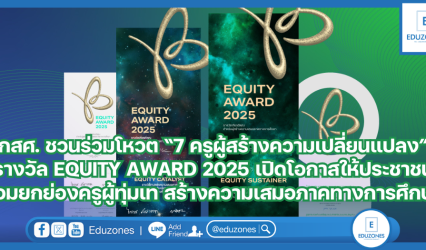 ครู-อาจารย์ กสศ. ชวนร่วมโหวต “7 ครูผู้สร้างความเปลี่ยนแปลง” รางวัล EQUITY AWARD 2025 เปิดโอกาสให้ประชาชนร่วมยกย่องครูผู้ทุ่มเท สร้างความเสมอภาคทางการศึกษา EZ Webmaster July 24, 2025 กองทุนเพื่อความเสมอภาคทางการศึกษา (กสศ.) เชิญชวนประชาชนร่วมแสดงพลังแห่งการขอบคุณ “ครูทุนเสมอภาค” ผู้ทุ่มเททำงานเพื่อเด็กและเยาวชนที่ขาดโอกาส ผ่านการร่วมโหวต 7 ครูผู้เข้าชิงรางวัล PEOPLE AWARD หนึ่งในรางวัลจากงาน EQUITY AWARD 2025 ที่จัดขึ้นเพื่อยกย่องบุคคลและสถานศึกษาผู้สร้างความเปลี่ยนแปลงอย่างเป็นรูปธรรม แม้ประเทศไทยมีนโยบายเรียนฟรี…