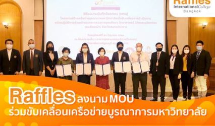 Blogนักเรียน วิทยาลัยนานาชาติราฟเฟิลส์ ร่วมลงนาม MOU ขับเคลื่อนเครือข่ายบูรณาการมหาวิทยาลัย EZ Webmaster June 25, 2021 อาจารย์ภาณุพงศ์ พิทักษ์สังข์ อธิการบดีวิทยาลัยนานาชาติราฟเฟิลส์ ได้ลงนามบันทึกความเข้าใจว่าด้วยความร่วมมือโครงการขับเคลื่อนการดำเนินงานหน่วยปฏิบัติการส่วนหน้า กับ มหาวิทยาลัยราชภัฏธนบุรี, มหาวิทยาลัยหัวเฉียวเฉลิมพระเกียรติ, วิทยาลัยเซาธ์อีสท์บางกอก และสถาบันเทคโนโยีแห่งสุวรรณภูมิ ณ ห้องประชุมชั้น 1 อาคารอุตสาหกรรมบริการ(โรงแรม) ณ มหาวิทยาลัยราชภัฏธนบุรี สมุทรปราการ จากที่รัฐบาลมีนโยบาย ขับเคลื่อนไทยไปด้วยกัน ในระดับจังหวัด และโครงการมหาวิทยาลัยสู่ตำบล เพื่อพัฒนาและแก้ไขปัญหาได้โดยเร็วอย่างเป็นรูปธรรม และเพื่อสร้างเครือข่ายการทำงานงานร่วมกันระหว่างภาคีเครือข่ายประจำจังหวัดสมุทรปราการ โดยใช้องค์ความรู้จากงานวิจัยเทคโนโลยีและนวัตกรรม ร่วมกับการบูรณาการองค์ความรู้ที่หลากหลายของสถาบันอุดมศึกษา และหน่วยงานในสังกัดกระทรวงการอุดมศึกษา วิทยาศาสตร์ วิจัยและนวัตกรรม อาจารย์ภาณุพงษ์ พิทักษ์สังข์ อธิการบดีวิทยาลัยนานาชาติราฟเฟิลส์ กล่าวว่า สำหรับการทำ MOU ในวันนี้ที่ประกอบไปด้วย 5 มหาวิทยาลัยหลักที่อยู่ในเขตจังหวัดสมุทรปราการ สืบเนื่องมาจากสถานการณ์ Covid-19 ทำให้เกิดนโยบายในการฉีดวัคซีนให้แก่บุคลากรและนักศึกษา จึงทำให้เกิดการร่วมมือใน MOUครั้งแรก ต่อมาเราเล็งเห็นการพัฒนาวงการศึกษาในอนาคตข้างหน้า ซึ่งมีการแข่งขันทางด้านคุณภาพการศึกษา เทคโนโลยีที่สูงขึ้น เพราะฉะนั้นความสำคัญการร่วมมือกันของทั้ง…