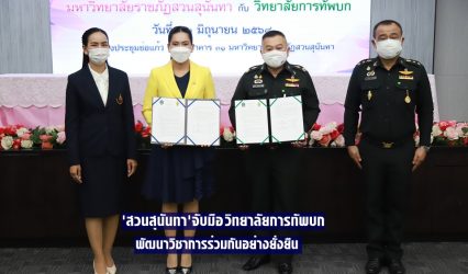 Blogกิจกรรม สวนสุนันทาจับมือวิทยาลัยการทัพบกพัฒนาวิชาการร่วมกันอย่างยั่งยืน tui sakrapee June 23, 2021 วันที่ 23 มิถุนายน 2564 มหาวิทยาลัยราชภัฏสวนสุนันทา โดย รองศาสตราจารย์ ดร. ชุติกาญจน์ ศรีวิบูลย์ อธิการบดีมหาวิทยาลัยราชภัฏสวนสุนันทา ลงนามในบันทึกข้อตกลงความร่วมมือทางวิชาการร่วมกับ วิทยาลัยการทัพบก โดย พลตรีมหศักดิ์ เทพหัสดิน…