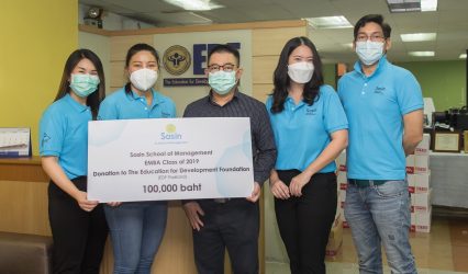 นักศึกษา มูลนิธิ EDF รับมอบทุนการศึกษาเพื่อนักเรียนมัธยมต้นที่ด้อยโอกาส EZ Webmaster June 21, 2021 มูลนิธิ EDF (มูลนิธิกองทุนการศึกษาเพื่อการพัฒนา) โดยนายสรรเพชร นิลรัตน์ กรรมการผู้จัดการ ถ่ายภาพร่วมกับ นางสาวพัชรดา เลิศจิรฐานนท์ นางสาวสุรนันท์ พึ่งสม นางสาวณิชาพัชร วลัยพัชรา และนายแพททริก ปูเลีย นิสิตหลักสูตรบริหารธุรกิจมหาบัณฑิตการจัดการ รุ่น 2019 สถาบันบัณฑิตบริหารธุรกิจศศินทร์แห่งจุฬาลงกรณ์มหาวิทยาลัย ในโอกาสรับมอบเงิน 100,000 บาท (หนึ่งแสนบาท) จากการจัดกิจกรรมกอล์ฟการกุศล Sasin…