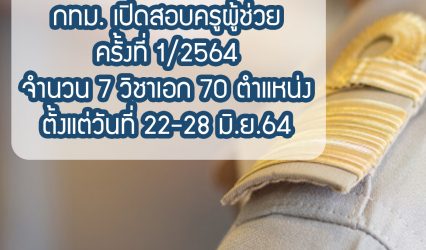 ครู-อาจารย์ กทม. เปิดสอบครูผู้ช่วย ครั้งที่ 1/2564 จำนวน 7 วิชาเอก 70 ตำแหน่ง ตั้งแต่วันที่ 22-28 มิ.ย. 64 EZ Webmaster June 14, 2021 สำนักงานคณะกรรมการข้าราชการกรุงเทพมหานคร เปิดรับสมัครสอบแข่งขันเพื่อบรรจุและแต่งตั้งบุคคลเข้ารับราชการเป็นข้าราชการครู และบุคลากรทางการศึกษากรุงเทพมหานคร ตำแหน่งครูผู้ช่วย ครั้งที่ 1/2564 จำนวนรับ 7 วิชาเอก 70 ตำแหน่ง โดยจะเปิดรับสมัครตั้งแต่วันที่ 22-28 มิ.ย. 64 …
