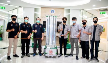 ครู-อาจารย์ มจพ .มอบนวัตกรรมหุ่นยนต์ประดู่แดงฉายแสง UVC แก่โรงพยาบาลรามาธิบดี EZ Webmaster June 12, 2021 ผศ.สมชาย เวชกรรม รองอธิการบดีฝ่ายกิจการนักศึกษาและศิษย์เก่าสัมพันธ์ พร้อมด้วยคุณภรณี ลีนุตพงษ์ กรรมการสภามหาวิทยาลัยผู้ทรงคุณวุฒิ อาจารย์ ดร.สราวุฒิ สืบแย้ม ผู้ช่วยอธิการบดีการคลังและกิจการทั่วไป ผศ.ดร.ณัฐพงศ์ มกระธัช ผู้ช่วยอธิการบดีฝ่ายพัฒนาสิ่งแวดล้อมและกายภาพ และทีมผู้วิจัย รศ.ดร.ศุภชัย ตระกูลทรัพย์ทวี…