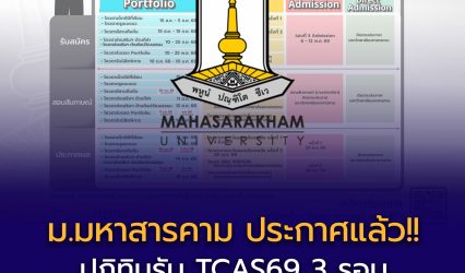 นักเรียน ม.มหาสารคาม ประกาศแล้ว!! ปฏิทินรับ TCAS69 3 รอบ EZ Webmaster July 23, 2025 ม.มหาสารคาม ประกาศแล้ว!! ปฏิทินรับ TCAS69 3 รอบ TCAS รอบที่ 1 : PORTFOLIO – รับสมัคร : 15 ส.ค.…