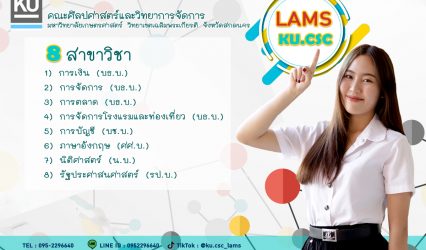 นักเรียน คณะศิลปศาสตร์และวิทยาการจัดการ เปิดรับสมัครนิสิตใหม่ TCAS64 รอบที่ 4 โครงการขยายโอกาสทางการศึกษาและโครงการนิสิตพ้นสภาพ EZ Webmaster June 4, 2021 เปิดรับสมัครนิสิตใหม่ TCAS64 รอบที่ 4 โครงการขยายโอกาสทางการศึกษาและโครงการนิสิตพ้นสภาพ คณะศิลปศาสตร์และวิทยาการจัดการ มหาวิทยาลัยเกษตรศาสตร์ วิทยาเขตเฉลิมพระเกียรติ จังหวัดสกลนคร รอบที่ 4 (รอบสุดท้าย) รับสมัครวันที่ 3-13 มิ.ย.64 เท่านั้น สาขาที่เปิดรับสมัคร 8…