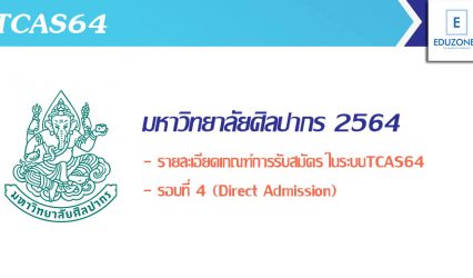 นักเรียนนักศึกษา #TCAS64 ม.ศิลปากร เปิดรับสมัครนศ.ป.ตรี รอบที่ 4 (Direct Admission) ตั้งแต่วันที่ 3-7 มิ.ย. 64 EZ Webmaster June 2, 2021 มหาวิทยาลัยศิลปากร เปิดรับสมัครคัดเลือกบุคคลเพื่อเข้าศึกษาต่อในระดับปริญญาตรี รอบที่ 4 (Direct Admission) ประจำปีการศึกษา 2564 โดยจะเปิดรับสมัครตั้งแต่วันที่ 3-7 มิถุนายน 2564 คณะที่เปิดรับสมัคร -คณะจิตรกรรม ประติมากรรมและภาพพิมพ์…