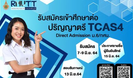 Blogนักเรียน #TCAS64 รับตรงอิสระ “มทร.ธัญบุรี” รับผู้จบ ม.6/กศน. เริ่ม 7 – 9 มิ.ย.นี้เท่านั้น tui sakrapee May 31, 2021 มหาวิทยาลัยเทคโนโลยีราชมงคลธัญบุรี (มทร.ธัญบุรี) รับสมัครเข้าศึกษาต่อปริญญาตรี TCAS4 > Direct Admission ม.6/กศน. ปี 2564 รับสมัครที่ https://student.mytcas.com ดูรายละเอียดเพิ่มเติมได้ที่ https://www.rmutt.ac.th/content/50774 หากพบปัญหาหรือข้อสงสัยในรับสมัครเข้าศึกษาต่อระดับปริญญาตรี การขึ้นทะเบียนนักศึกษาใหม่…
