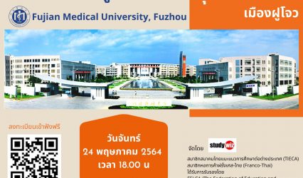 นักเรียน สัมมนาทุนเรียนต่อแพทย์เมืองฝูโจว EZ Webmaster May 19, 2021 สัมมนาทุนเรียนต่อแพทย์เมืองฝูโจว จาก Fujian Medical University (FMU) รับฟังข้อมูลกับทางมหาวิทยาลัยโดยตรง วันจันทร์ที่ 24 พฤษภาคม 2564 เวลา 18.00 น. ลงทะเบียนเข้าฟัง ฟรี…