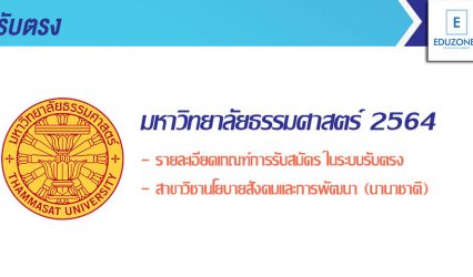นักศึกษานักเรียน #รับตรง64 คณะสังคมสงเคราะห์ศาสตร์ ม.ธรรมศาสตร์ สาขาวิชานโยบายสังคมและการพัฒนา (นานาชาติ) เปิดรับสมัครตั้งแต่วันที่ 3-24 พ.ค. 64 EZ Webmaster May 19, 2021 โครงการปริญญาตรีภาคพิเศษ หลักสูตรศิลปศาสตรบัณฑิต สาขาวิชานโยบายสังคมและการพัฒนา (หลักสูตรนานาชาติ) คณะสังคมสงเคราะห์ศาสตร์ มหาวิทยาลัยธรรมศาสตร์ รอบ Inter Program Admission 2 ประจำปีการศึกษา 2564 โดยจะเปิดรับสมัครตั้งแต่วันที่ 3-24 พฤษภาคม…