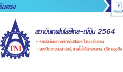 นักเรียนนักศึกษา #รับตรง64 สถาบันเทคโนโลยีไทย-ญี่ปุ่น เปิดรับสมัครนศ.ป.ตรี ประเภท Admissions ตรง ตั้งแต่วันนี้ – 30 มิ.ย. 64 EZ Webmaster May 19, 2021 สถาบันเทคโนโลยีไทย-ญี่ปุ่น เปิดรับสมัครบุคคลเข้าศึกษาระดับปริญญาตรี หลักสูตร 4 ปี ประเภท Admissions ตรง ประจำปีการศึกษา 2564 โดยขยายเวลาเปิดรับสมัครตั้งแต่วันนี้ – 30 มิถุนายน 2564 …